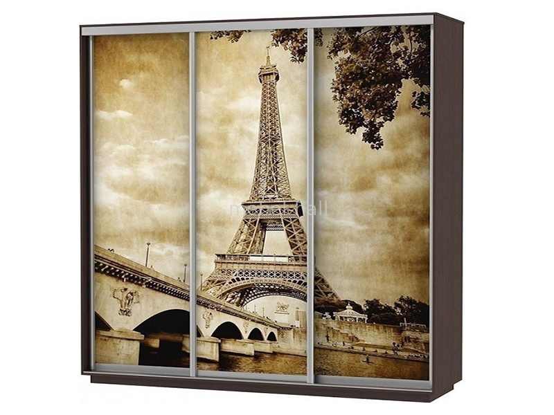 Большой трехдверный шкаф купе в спальню с фотопечатью на фасадах размером 220*240*45 см