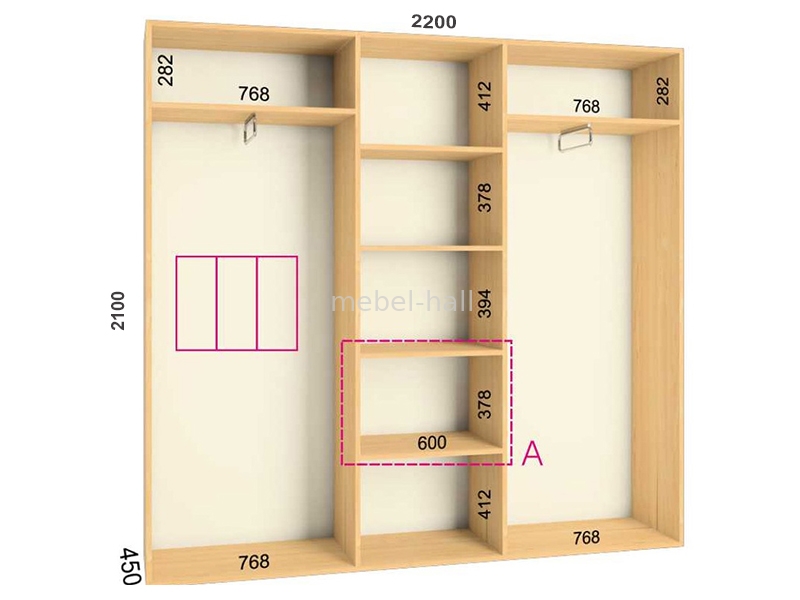 Шкаф-купе трехдверный Ш220хВ240хГ45 см Влаби