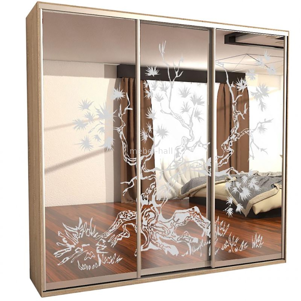 Шкаф-купе трехдверный Ш230хВ210хГ60 см зеркало пескоструй