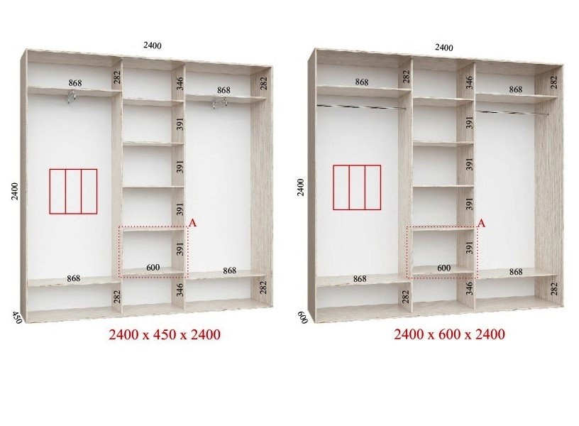 Размер ширина 2,4 метра; высота 2,4 метра; глубина 0,45 метра. Фасады на выбор: фотопечать, лакобель, дсп ламинированное, зеркало, зеркало плюс дсп. Шкаф купе есть на складе, звоните уточняйте цвет. Можем изготовить под заказ, после выбора наполнения фасадов.