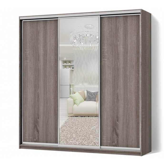 Большой трехдверный шкаф купе с зеркальными фасадами размером 240*225*60 см с качественной раздвижной алюминиевой системой