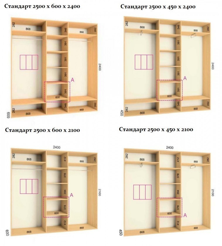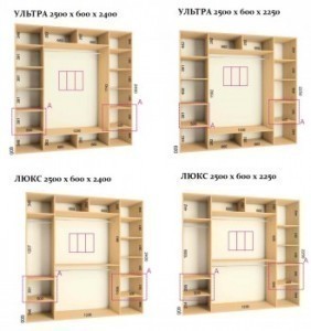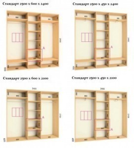 Ширина шкафа 2,5 метра; высота 2,4 метра; глубина 0,45 метра. Фасады на выбор: фотопечать, лакобель, дсп ламинированное, зеркало, зеркало плюс дсп. Шкаф купе есть на складе, звоните уточняйте цвет. Можем изготовить под заказ, после выбора наполнения фасадов.