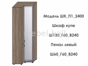 Шкаф-купе угловой Ш 130x120 x В 240 x Г 60 с пеналом