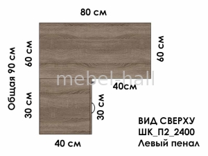 Приставной пенал, левый или правый, высота 240 см, глубина 40 см, ширина 30 см.
