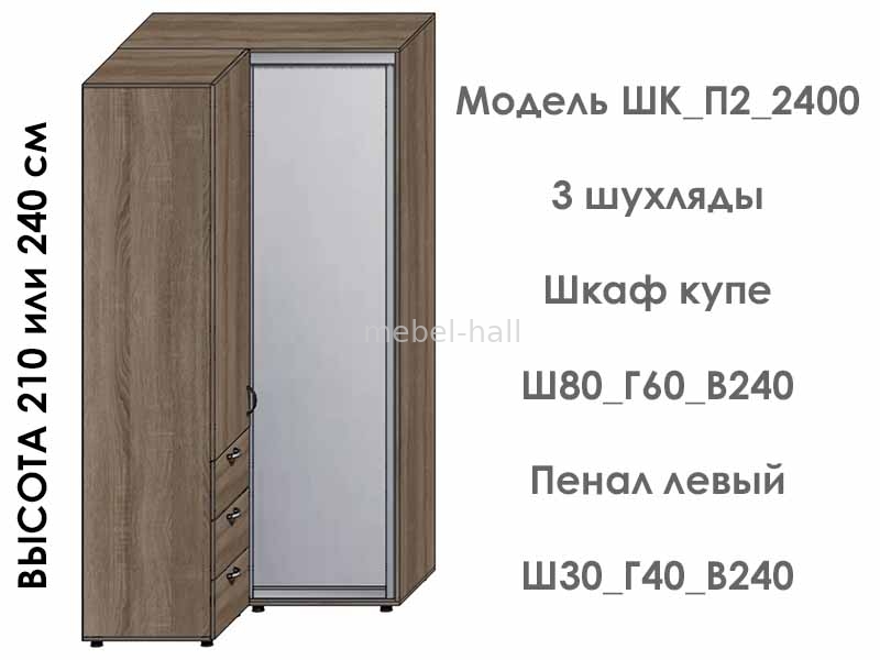 | Высота ШК, см: | 240, 210 |