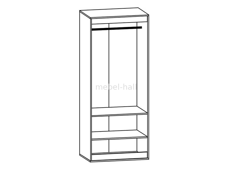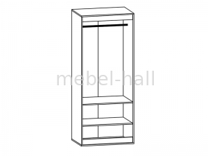 Внутри шкаф имеет штангу для вешалок и две полки внизу.