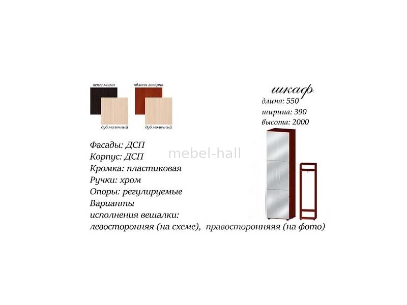 Фасад и корпус выполнен из ламинированного ДСП Венге Магия, Дуб Молочный, Яблоня Лорано.
