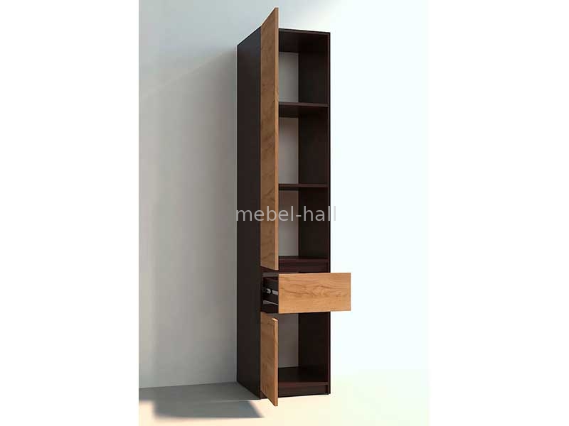 Шкаф пенал распашной с ящиком Брайт Мастер Форм 400х520х2000h мм ДСП Дуб Крафт Золото / Венге Магия