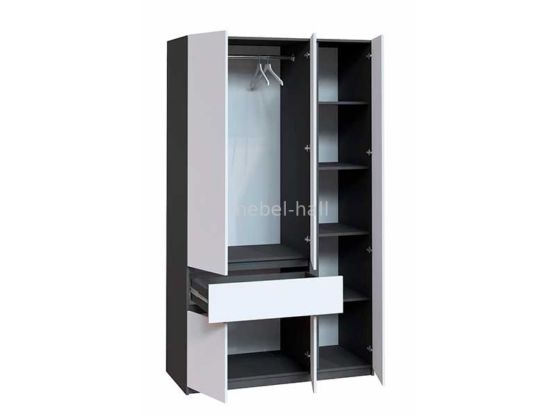 Шкаф распашной с зеркалом 3 двери с 1 ящиком Брайт Мастер Форм 1221х520х2000h мм ДСП Белый / Антрацит