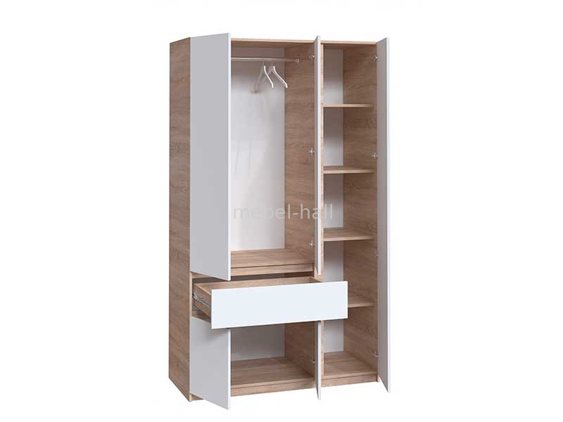 Шкаф распашной с зеркалом 3 двери с 1 ящиком Брайт Мастер Форм 1221х520х2000h мм ДСП Белый / Дуб Сонома