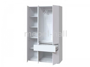 Шкаф распашной с зеркалом 3 двери с 1 ящиком Брайт Мастер Форм 1221х520х2000h мм ДСП Белый