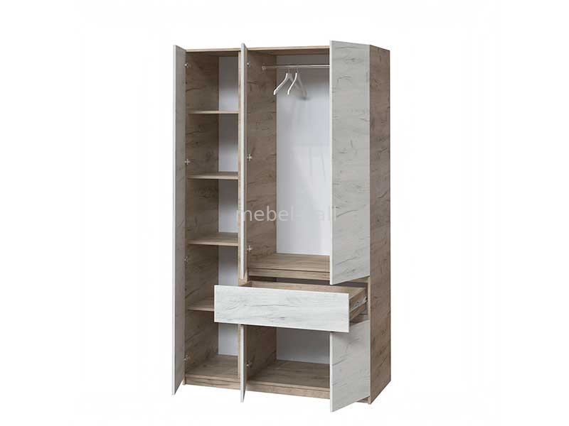 Шкаф распашной с зеркалом 3 двери с 1 ящиком Брайт Мастер Форм 1221х520х2000h мм ДСП Дуб Крафт Белый / Дуб Крафт Серый