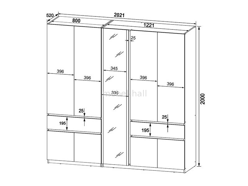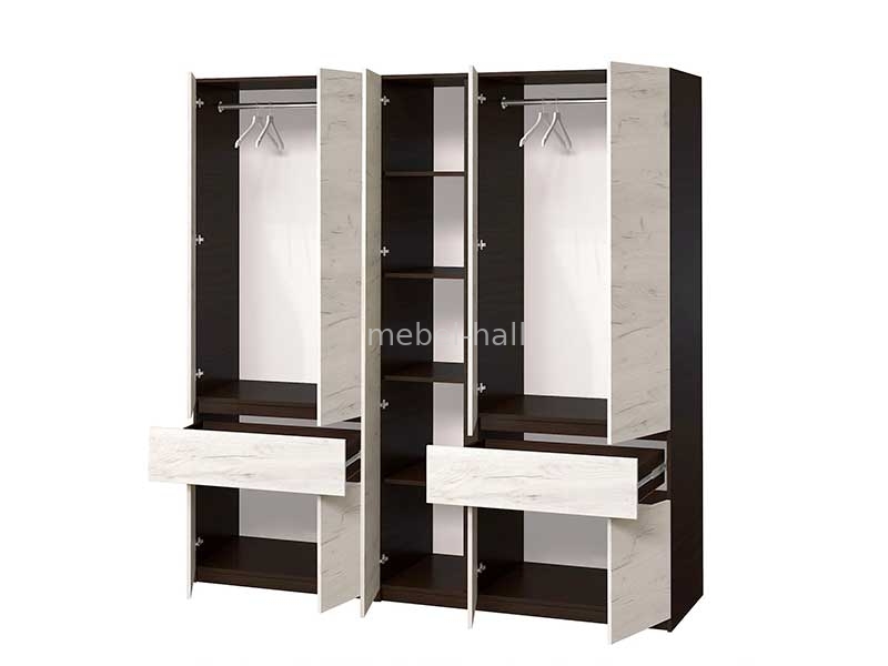 Шкаф распашной с зеркалом 5 дверей с 2 ящиками Брайт Мастер Форм 2021х520х2000h мм ДСП Дуб Крафт Белый / Венге Магия