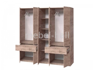 Шкаф распашной с зеркалом 5 дверей с 2 ящиками Брайт Мастер Форм 2021х520х2000h мм ДСП Дуб Крафт Серый