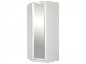 Шкаф угловой Полина Новая с одной дверью Світ Меблів Белый от украинской фабрики "Світ Меблів". Классический шкаф в итальянском стиле, характеризуется изысканным дизайном, роскошными формами с оригинальными ручкам, сочетающиеся с художественной росписью на фасадах и зеркалом. Шкаф имеет две секции, правая секция имеет штангу для тремплей и одну полку сверху, левая - семь полок одинаковой высоты.