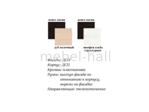 Корпус и фасады выполнены из ламинированного ДСП Дуб Молочный/Венге Магия или Нимфея Альба/Венге Магия.