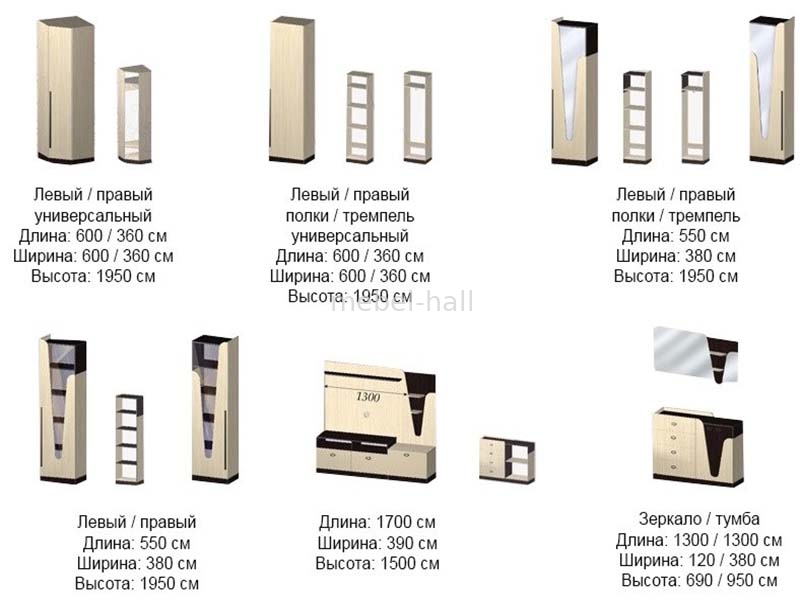Мебель Арья включает в себя большое количество идеально гармонирующих друг с другом модулей для создания идеального интерьера гостиной, спальни или прихожей.