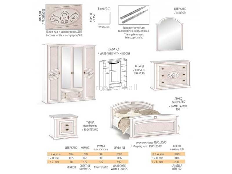 Спальный гарнитур Алабама продается только комплектом и состоит из: