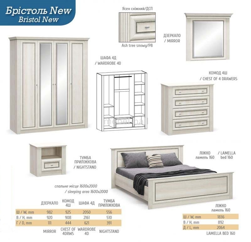 Каждый элемент Спальни Бристоль NEW Мебель Сервис, Вы можете подобрать отдельно!