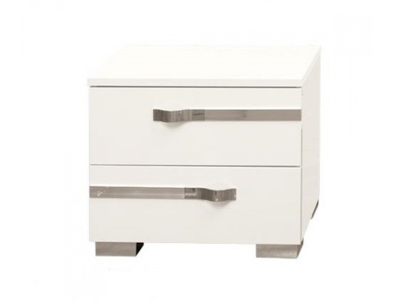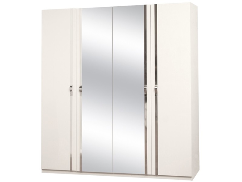 Все фасады элементов спальни Экстаза Новая отлакированные, выполнены из ламинированного ДСП в Белом цвете Лак + Хромированные накладки.