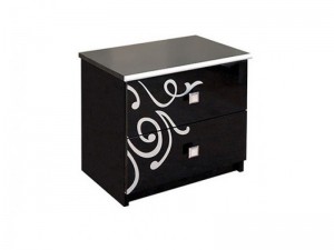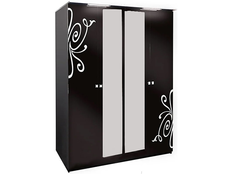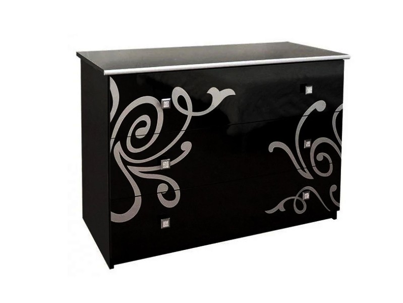 Все фасады элементов спальни Фелиция отлакированные, выполнены из ламинированного ДСП в Черном цвете Лак + Художественная Печать.