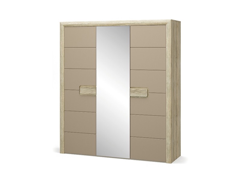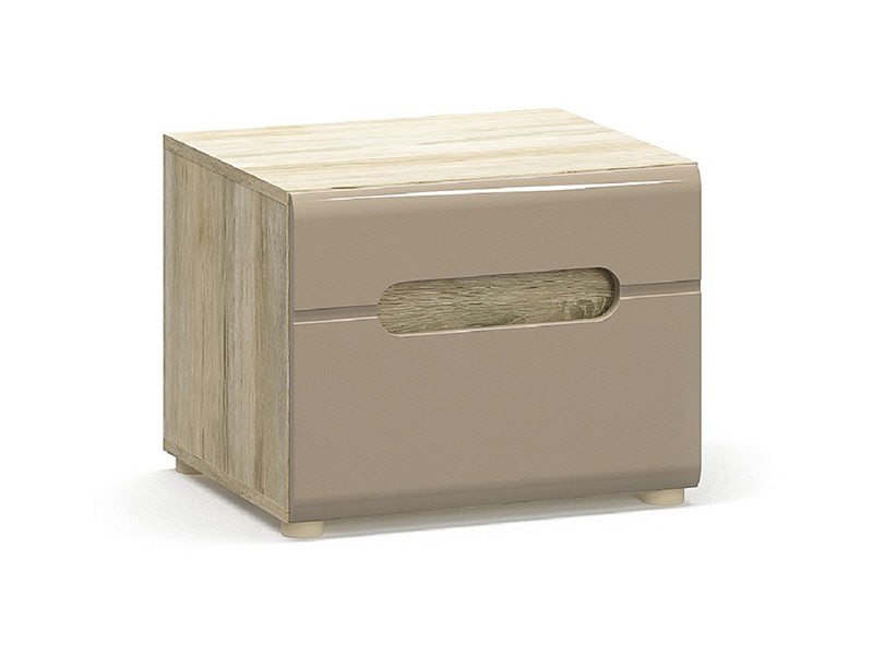 Все фасады элементов спальни Флоренс выполнены из ламинированного ДСП в цвете Секвоя + МДФ Капучино Глянец.