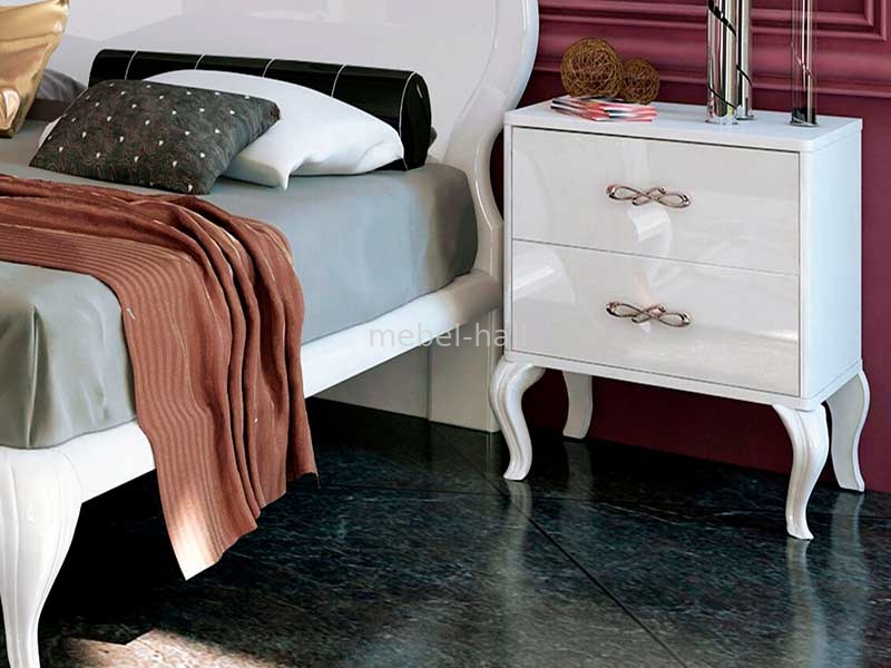 Модульная мебель для спальни Империя в классическом стиле в белоснежном глянцевом цвете от украинской мебельной фабрики MiroMark. Изысканный дизайн, утонченный стиль, высокое качество исполнения, элегантные изогнутые ножки, оригинальные металлические хромированные ручки, кровать с мягким изголовьем, помогут оформить стильный интерьер спальной комнаты.