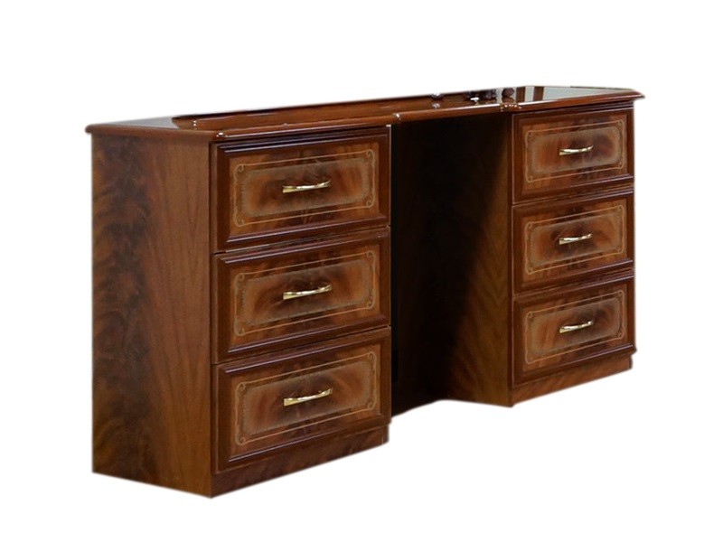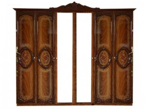 Спальня Кармен Новая с шестидверным шкафом Світ Меблів от украинской фабрики "Світ Меблів". Классическая спальня в итальянском стиле, характеризуется изысканным дизайном, роскошными формами с изящной декоративной резьбой и оригинальными ручкам, сочетающиеся с художественной росписью на фасадах. Модель оснащена выдвижными ящиками на направляющих полного выдвижения, что гарантирует плавность при выдвижении и долговечность. Спальня Кармен достойна королевских апартаментов. Все фасады элементов спальни Кармен отлакированные, выполнены из ламинированного ДСП в цвете Пино Орех Лак + Художественная Печать + Декоративная Резьба.Корпус элементов спальни Кармен выполнен из ламинированного ДСП в цвете Пино Орех.
