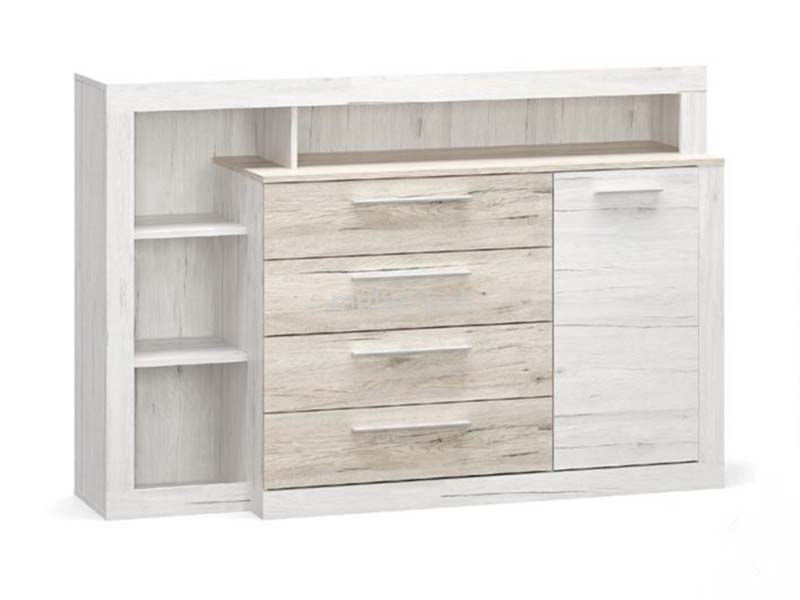Корпус выполнен из ламинированного ДСП в цвете Дуб Кари Белый.