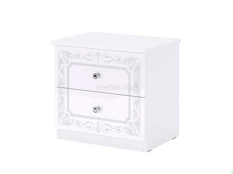 Модульная мебель для спальни в классическом стиле в белом глянце с художественной печатью от украинской мебельной фабрики MiroMark. Современный дизайн, металлические круглые ручки, кровать с шикарным мягким изголовьем, помогут оформить стильный интерьер спальной комнаты.