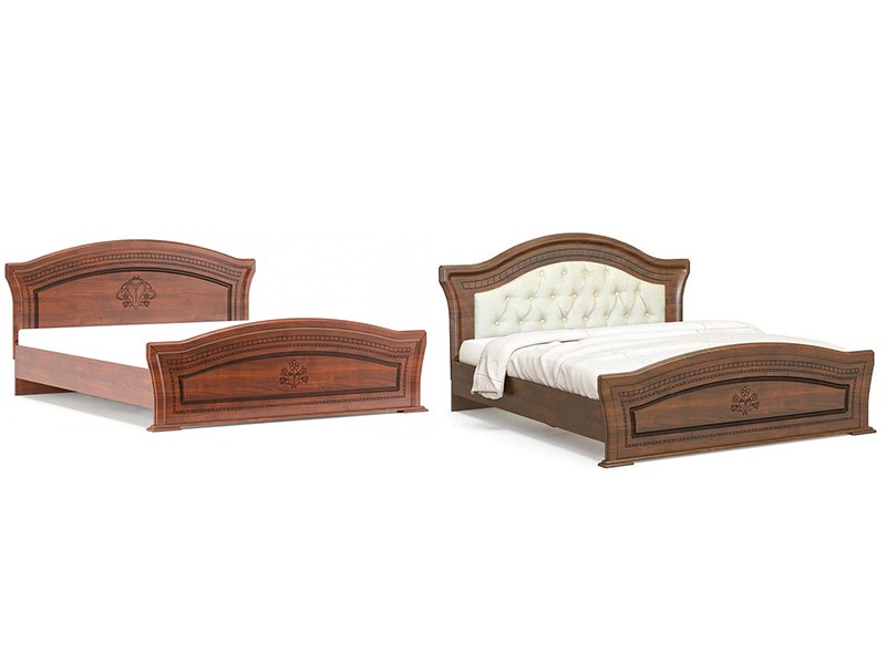 Все фасады элементов спальни Милано выполнены из ламинированного МДФ + патина в цвете Вишня Портофино или Береза Тундра.