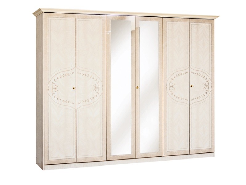 Спальня Опера с шестидверным шкафом Світ Меблів Роза от украинской фабрики "Світ Меблів". Классическая спальня в итальянском стиле, характеризуется изысканным дизайном, роскошными формами с изящной декоративной резьбой и художественной печатью на фасадах. Модель оснащена выдвижными ящиками на направляющих полного выдвижения, что гарантирует плавность при выдвижении и долговечность. Спальня Опера достойна королевских апартаментов.