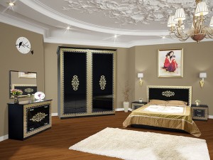 Спальный гарнитур СОФИЯ шкаф 4Д ДСП Черный глянец с художественной печатью