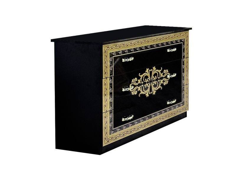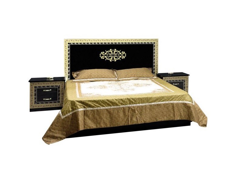 Все фасады элементов спальни София отлакированные, выполнены из ламинированного ДСП в Черном цвете Лак + Художественная Печать.