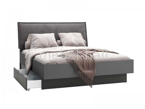 Спальня Тео - модульная мебель в урбанистическом стиле от украинской мебельной фабрики MiroMark. Современный дизайн, экстравагантный графитовый цвет, скрытые пластмассовые ручки в цвете алюминий, кровать с мягким изголовьем и выдвижными ящиками, помогут оформить стильный интерьер спальной комнаты.