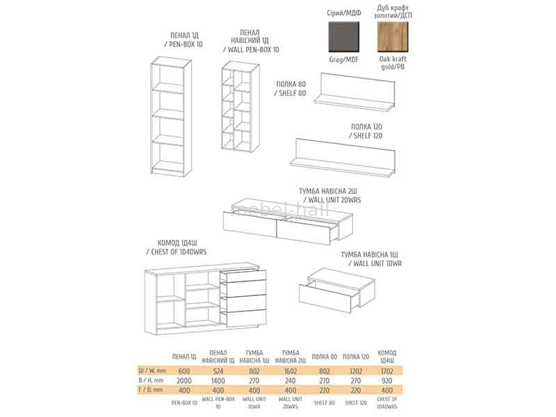 Фасад и корпус выполнен из ламинированного ДСП Дуб Крафт Золотой.