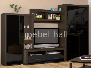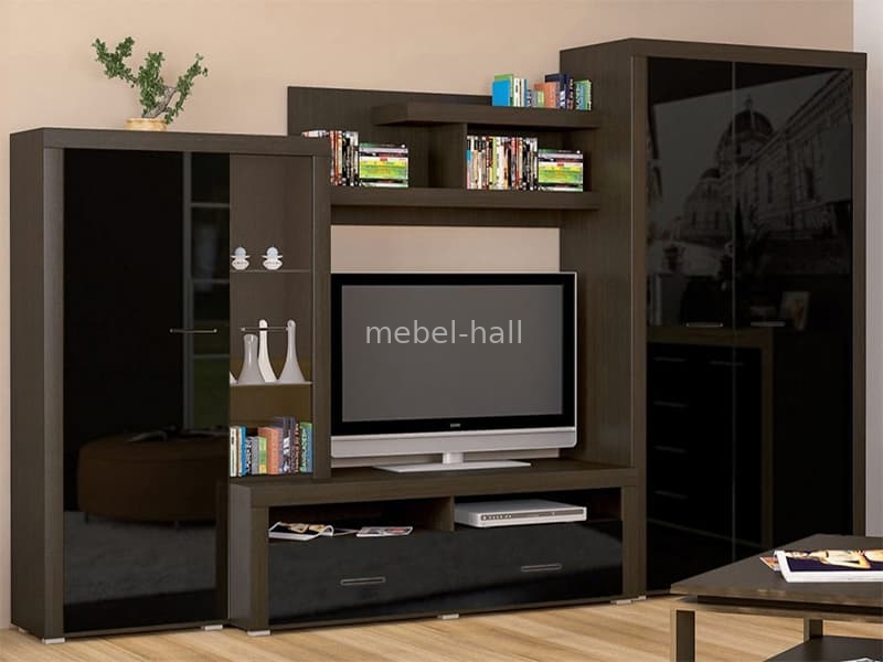 Стенка горка с нишей под ТВ Неон-2 Мебель Сервис МДФ Белый Глянец ДСП Венге Темный