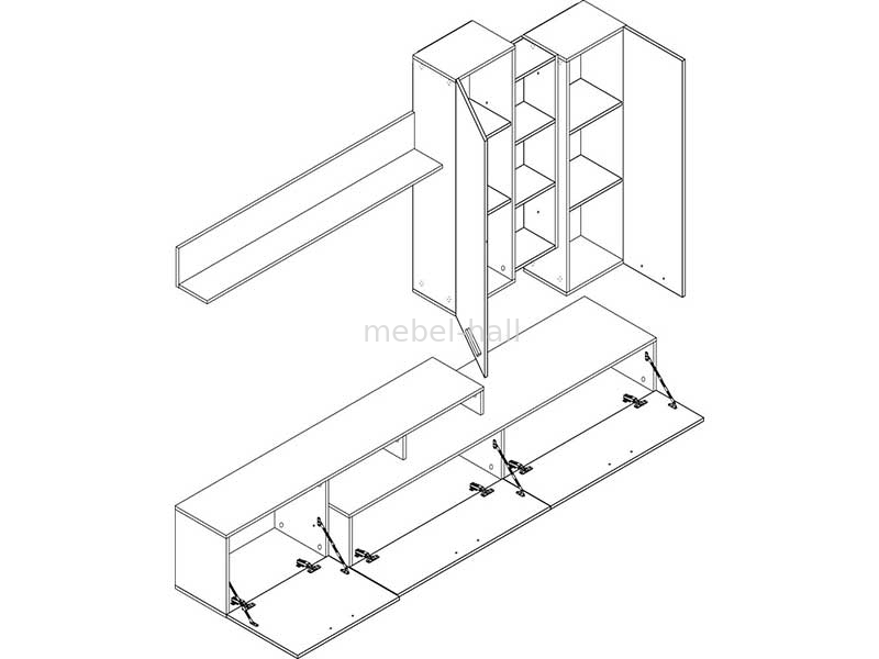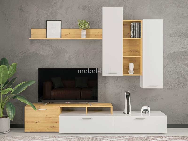 Стенка горка в гостиную Кубика от украинской фабрики Світ Меблів. Практичность и минимализм, вот две основные характеристики изделия. Характеризуется правильными геометрическими линиями в сочетании светлых и темных тонов. Впишется в небольшую гостиную.