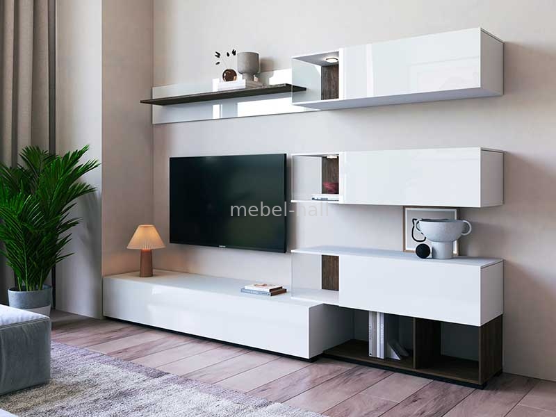 Современная стенка под телевизор Кубика Світ Меблів ДСП Графит / Нимфея Альба Лак