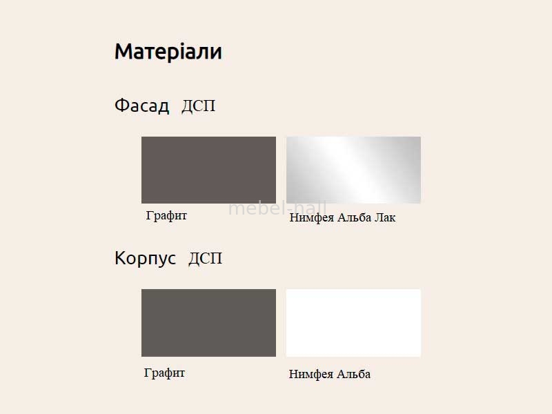 Корпус - ламинированное ДСП, Графит / Нимфея Альба.