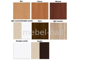 Корпус и фасад выполнены из ламинированного ДСП различных цветов под дерево.