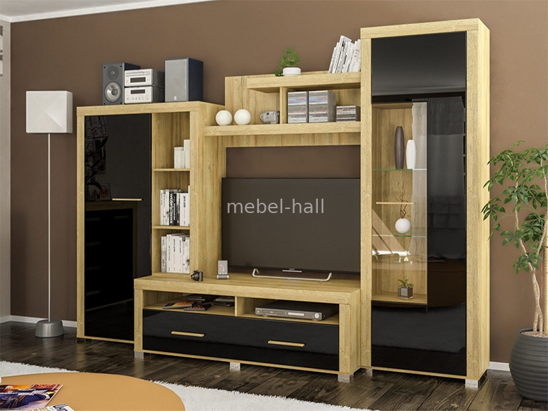 Стенка под ТВ в гостиную Неон-1 Мебель Сервис Дуб Золотой Белый Глянец
