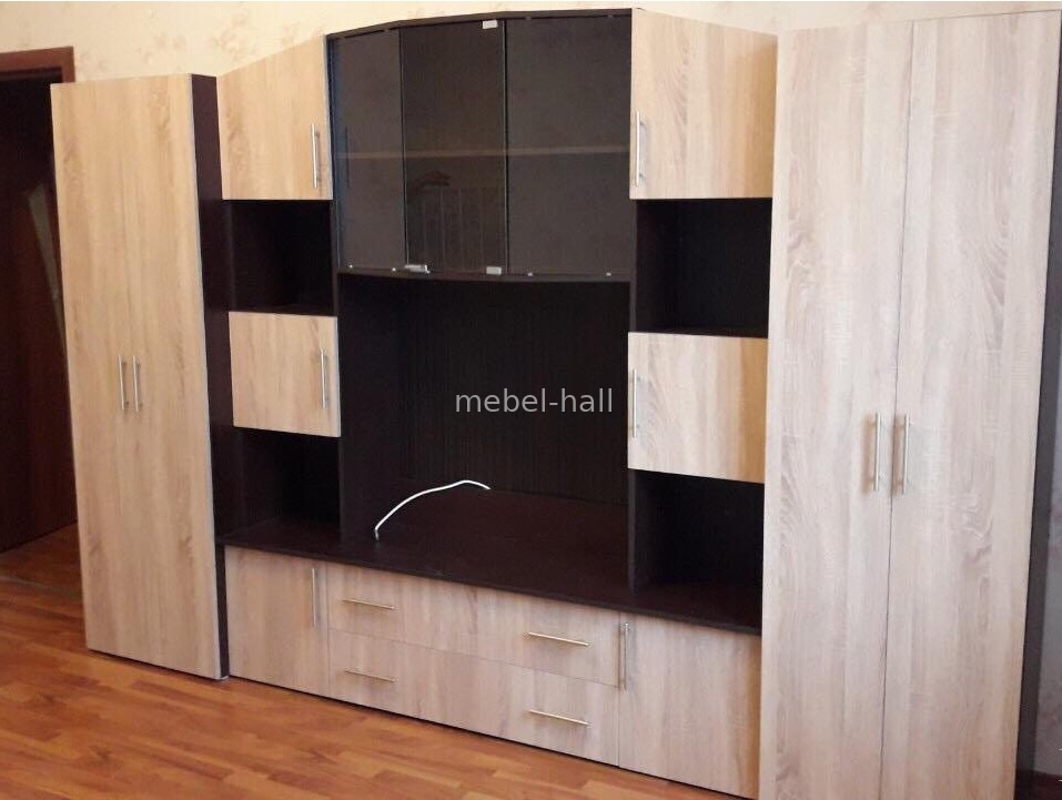 Стенка в гостиную под телевизор Фабиана СМ ДСП Дуб Сонома и Венге Темный