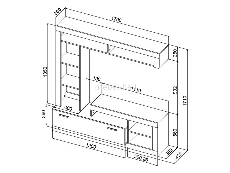 Небольшая современная стенка под ТВ ЛЕА практичная стенка от украинской мебельной фабрики Світ Меблів. Фасад и корпус гостиной сделаны из ламинированного ДСП. Необычная форма гостиной привлечет внимание ваших гостей. Наличие открытых полок позволит разместить ваши книги или сувениры.