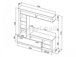Полное изделие: Ш 170 см х В 171 см х Г 42,1 см