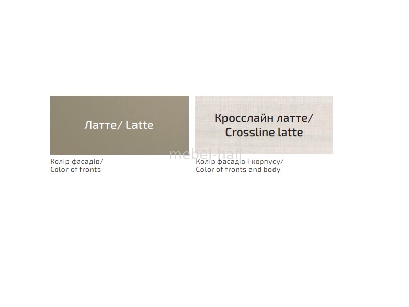 Фасад выполнен из ламинированного ДСП Латте и Крослайн Латте.