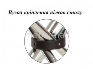 Каркас и ножки стола изготовлены из металла в виде прочных металлических труб, якобы сплетенных в один пучок, покрытые хромом.