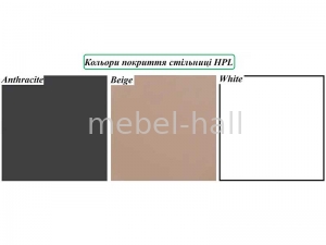 Столешница производится круглой формы из качественного ДСП толщиной 19 мм с покрытием HPL (высокопрочная ламинированная плита), на выбор покупателя доступны несколько цветовых оттенков, что поможет подобрать идеальный вариант для любого помещения.