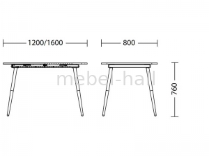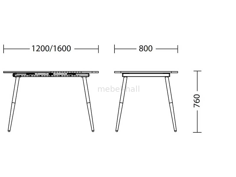 Стол обеденный раздвижной для кухни или гостиной CASEY H18 1200-1600х800 мм ножки металлические black столешница ДСП