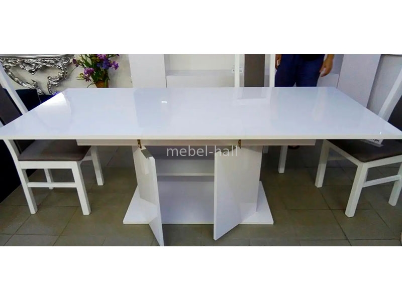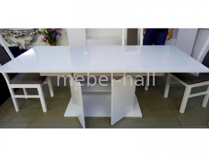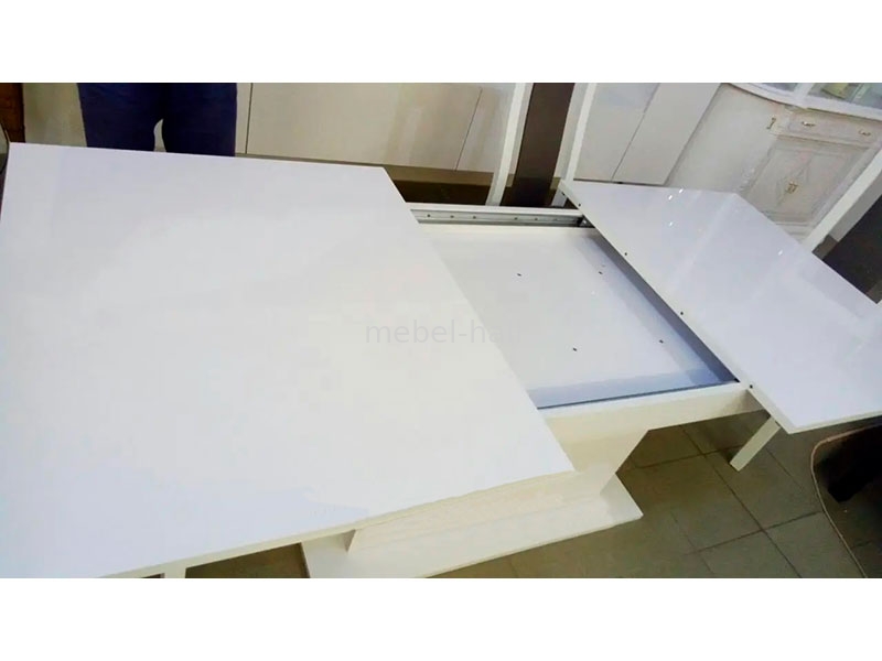 Стол обеденный раскладной с дверцами Рома MiroMark ДСП Белый Глянец / Белый 150-200 см